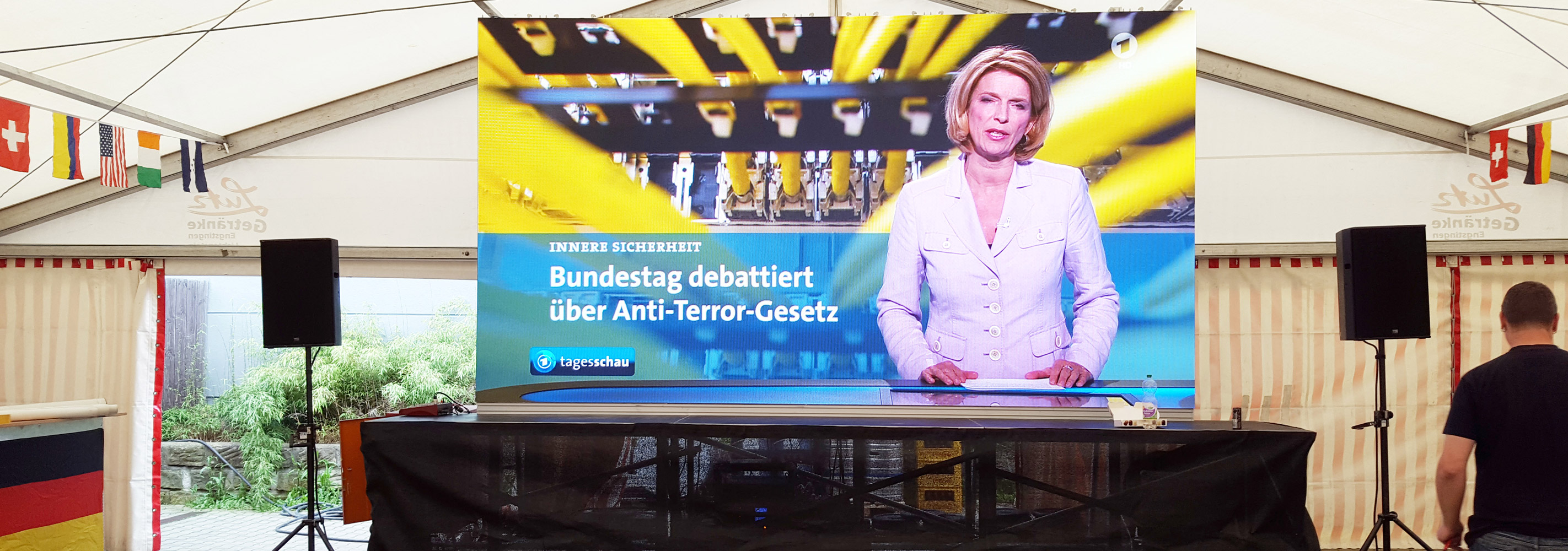 Beamer und Leinwand, Videodisplay oder LED-Wand. Natürlich mit passender Beschallung. Für drinnen und draußen.
