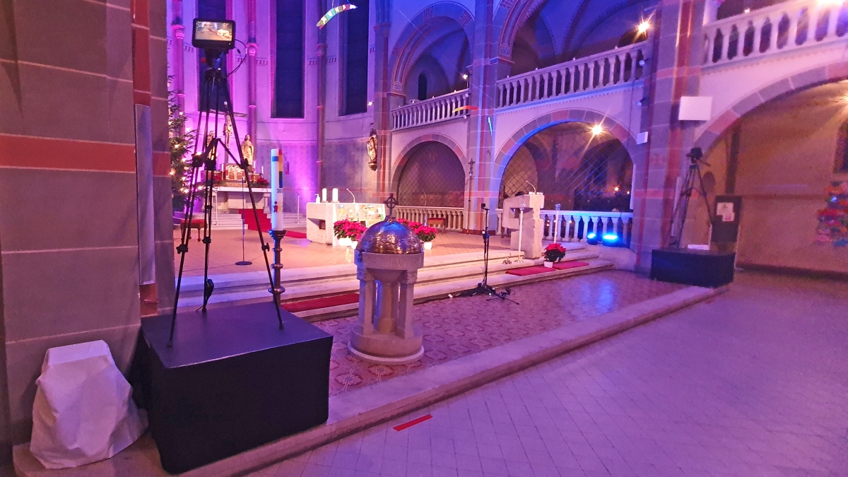 Von der St. Wolfgang Kirche Reutlingen wurden wir mit der Lichttechnischen Inszinierung des Gottesdienst zur Heiligen Nacht und der Umsetzung der Veranstaltung als hybriden Event mit Besuchern vor Ort und gleichzeitigen Internet-Stream beauftragt.